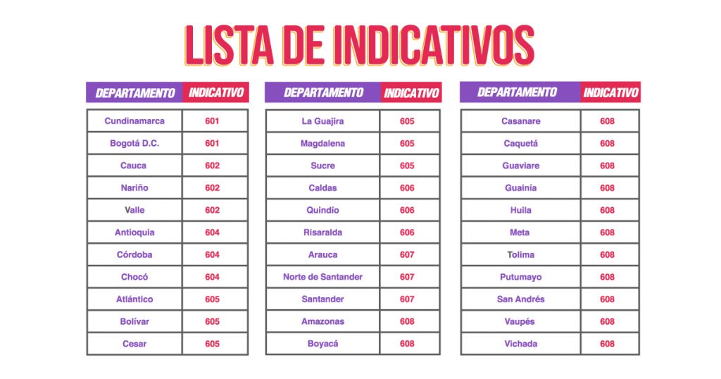 Indicativos por departamento.