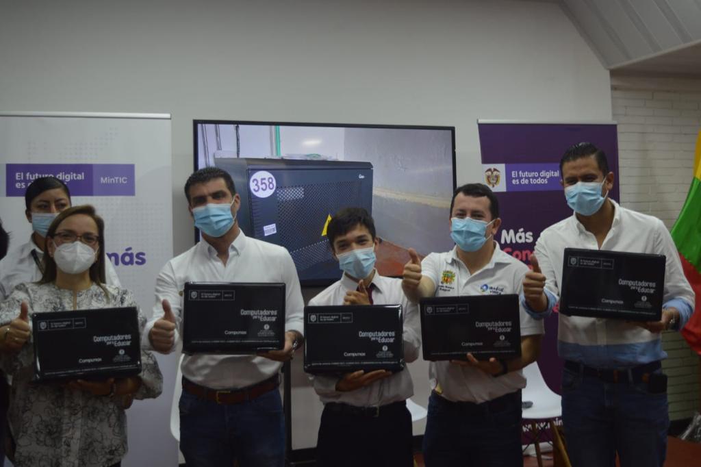 La Alcaldía de Ibagué y el Ministerio de las TIC entregaron 100 computadores a los jóvenes de la institución educativa Leonidas Rubio Villegas, lo que les permitirá desarrollar habilidades informáticas y fortalecer el aprendizaje tecnológico.