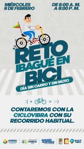 Este miércoles, 8 de febrero, se realizará la primera jornada del Día sin Carro y sin Moto en la Capital Musical, la cual contará con el apoyo de la CicloVibra en su recorrido habitual, desde la calle 10 hasta Los Arrayanes.