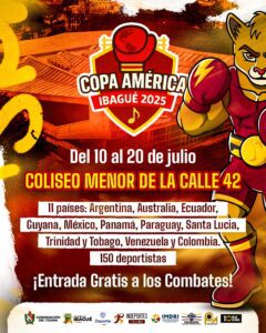 Este evento será una oportunidad para que Ibagué y el Tolima muestren al mundo su capacidad de organización, y fortalezcan su economía local del 10 al 20 de julio en el reciente inaugurado Coliseo Menor de la calle 42, que reunirá a los mejores boxeadores del continente.