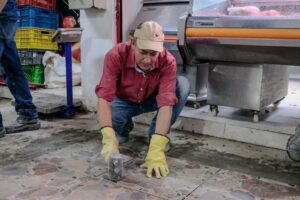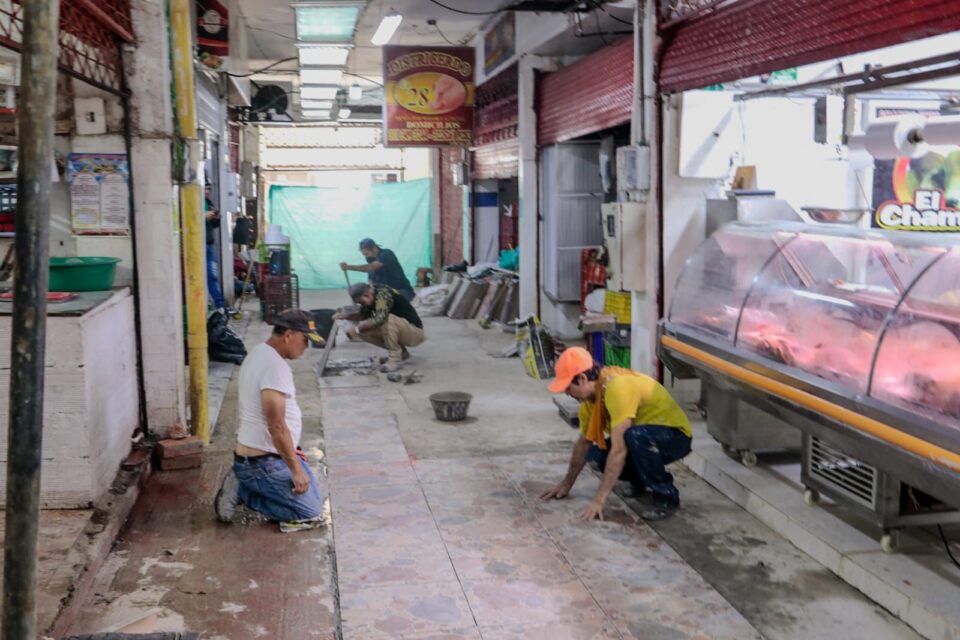 También se adelanta, junto a los adjudicatarios, la instalación de nuevas baldosas para embellecer el pabellón de carnes.