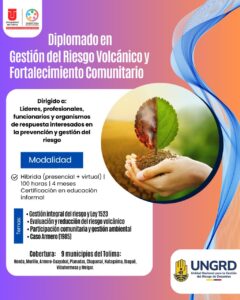 Con el propósito de fortalecer las capacidades institucionales, sociales y comunitarias frente a los desafíos ambientales y volcánicos del departamento, la Universidad del Tolima y la Unidad Nacional para la Gestión del Riesgo de Desastres (UNGRD) lanzan el Diplomado en Gestión del Riesgo Volcánico y Fortalecimiento Comunitario, una iniciativa académica de carácter gratuito que busca articular el conocimiento científico con la acción territorial.
