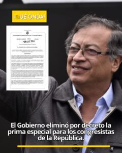 El presidente Gustavo Petro anunció la eliminación, por decreto, de la prima especial de servicios que recibían los congresistas de la República. La medida quedó establecida en el Decreto 0030 de 2026 y deroga un beneficio vigente desde 2013.