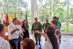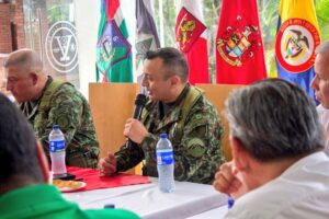 Con la presencia de veinte empresarios del Tolima, se realizó la reunión con los gremios económicos en el Cantón Militar Jaime Rooke, de la Sexta Brigada junto con los comandantes de batallones desplegados en el departamento. Este espacio fue liderado por el comandante de la Quinta División, brigadier general Carlos Ernesto Marmolejo Cumbe y el comandante de la Sexta Brigada, coronel Arnold Esneider Pérez Linares.