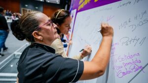 “¿Cómo es el trato entre nosotras mismas? ¿Cómo es el trato que tenemos entre las mismas mujeres? ¿Será que a veces nos dejamos llevar del chisme y lo que queremos hacer es hundir a esas mujeres de las que están hablando, de las que hablo? ¿O será que nosotros sencillamente le decimos a esa persona que quiere sembrar esa cizaña ahí para un momento? ¿Es otra como nosotros? Y yo quiero que ustedes reflexionen porque entre las mujeres debe existir una solidaridad muy grande”, resaltó la ejecutiva seccional.