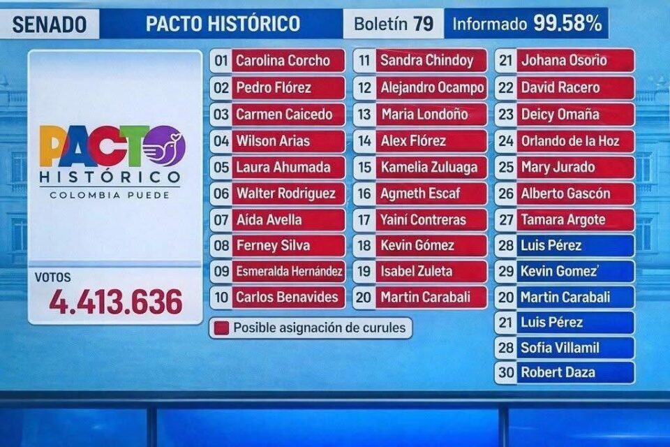 Aunque el Pacto Histórico fortalece su presencia en el Congreso, la cifra no le otorga mayoría absoluta, por lo que el gobierno deberá seguir construyendo alianzas con otras fuerzas políticas para sacar adelante reformas clave.